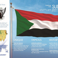 Glossy chromo Hi-Quality paper - Sudan flag and info about country.