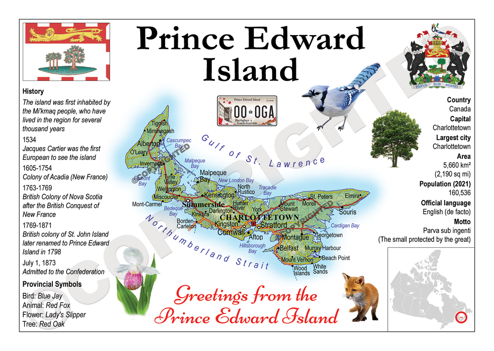 Glossy chromo Hi-Quality paper - Prince Edward Island map and info about.