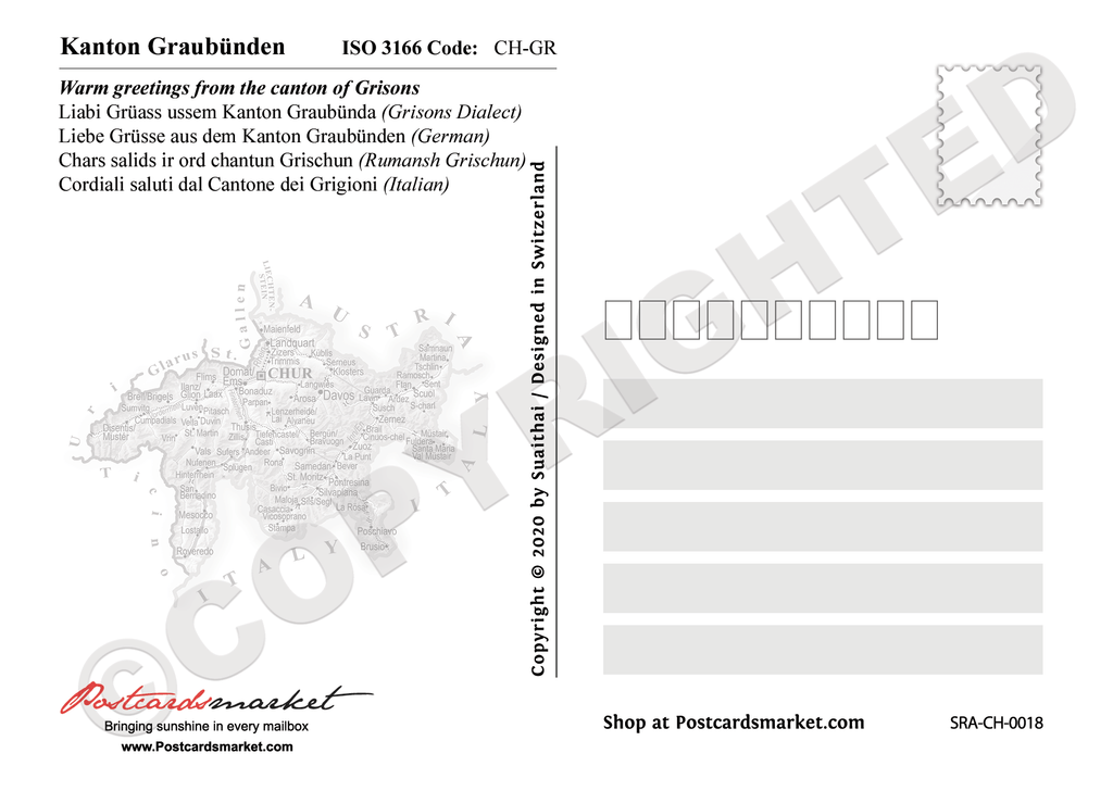 The target audience for this product are people who love to travel, explore new places, and share their experiences with others. The mood of these postcards is adventurous, exciting, and full of wonder! The theme revolves around the beautiful canton of Graubunden in Switzerland.
